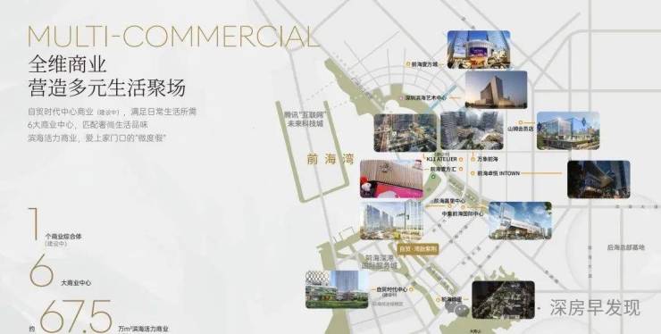 项目周边商业丰富,坐地铁3站到桂湾有前海壹方汇8万㎡,引进130家品牌,超50家区域首店,卓悦INTOWN购物中心3.53万㎡,约5公里内还有前海山姆会员商店,前海壹方城,欢乐港湾东岸等高端集中商业。