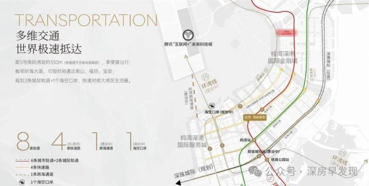 项目距离5号地铁线“妈湾站”约550米,步行5分钟即可到达,1站到铁路公园站可换乘15号地铁线,深惠城际“前保站”距离约1公里,便捷通行,毗邻听海大道,快速通达南山,福田,宝安。