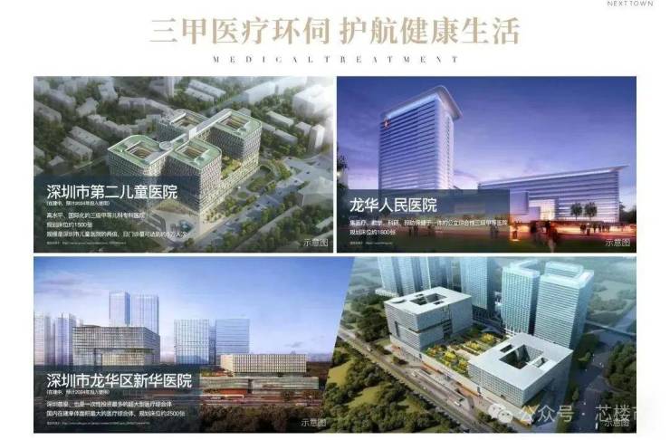 集萃深圳市新华医院(试营业)、龙华人民医院、深圳市第二儿童医院(已营业)等市属公立三甲医院,高标准医疗服务体系,护航健康生活。