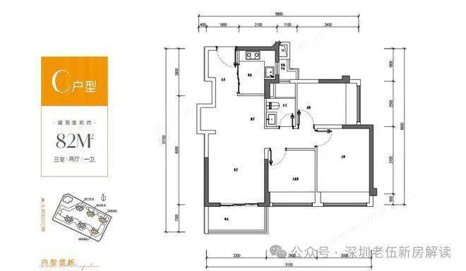 【建面约82㎡阳光三房】