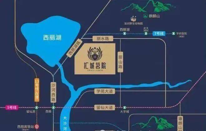 汇城茗院位于深圳市南山区西丽湖路与丽水路交汇处,地处西丽湖国际科教城核心区域。这一区域不仅自然环境优越,南临沙河支流,北眺西丽水库,还拥有丰富的教育资源,如清华大学研究生院、北京大学研究生院、南方科技大学等高等学府云集,为业主子女提供了优质的教育环境。此外,项目紧邻地铁7号线西丽湖站,交通便利,可快速到达市区多个重要繁华区域。