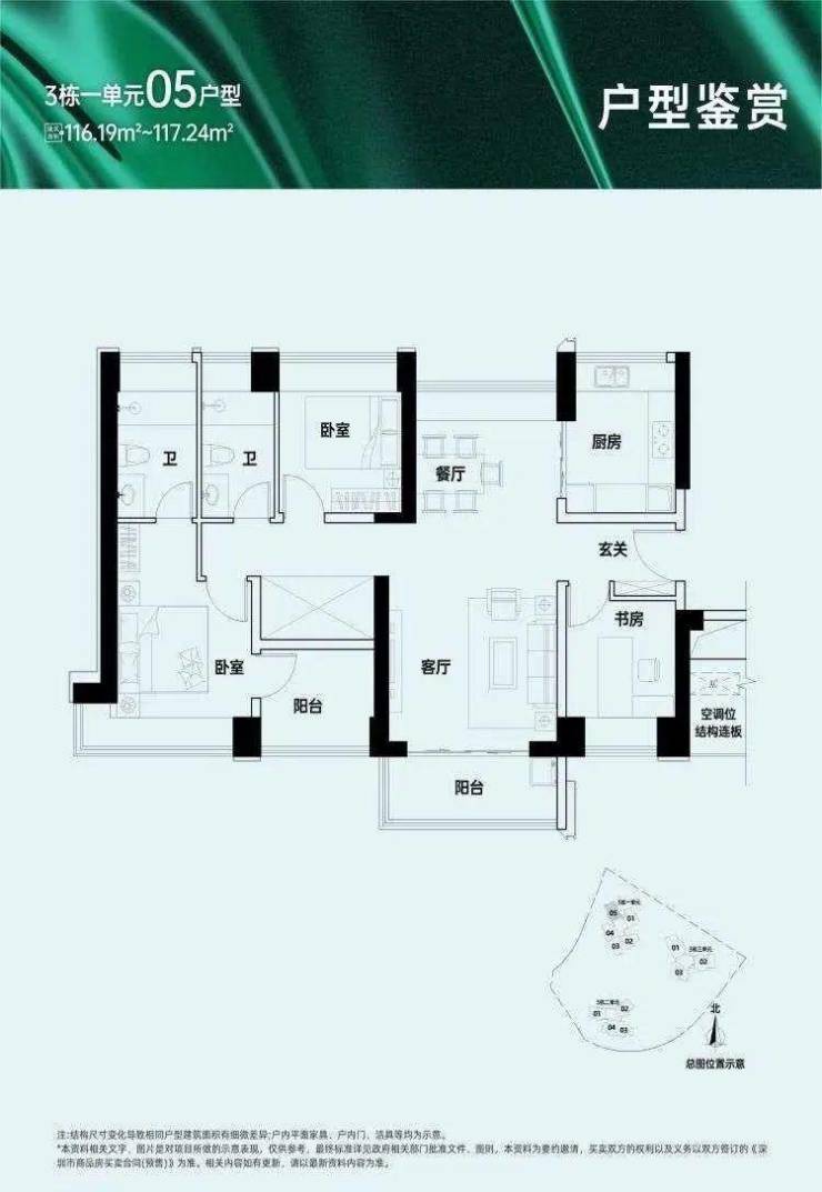 汇城茗院的户型设计以实用性和舒适性为主。目前推出的户型主要为约116平方米的3+1户型,使用率较高。户型布局合理,空间利用率高,满足了不同家庭的需求。此外,项目还有更大面积的户型可供选择,如195平方米的4+1房,适合对居住空间有更高要求的家庭。户型设计上,注重采光和通风,餐客双厅贯通阳台,拥有良好的视野和景观。
