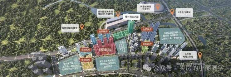 地铁配套:项目距离6号地铁线“光明站”约600米,步行需要11分钟左右,2站到凤凰城站,可以换乘13号线,4站到光明城站,这里可以换乘光明城高铁站/6号地铁线,6站到宝安上屋站,11站到南山西丽留仙洞,14站南山高新园,18站到后海。