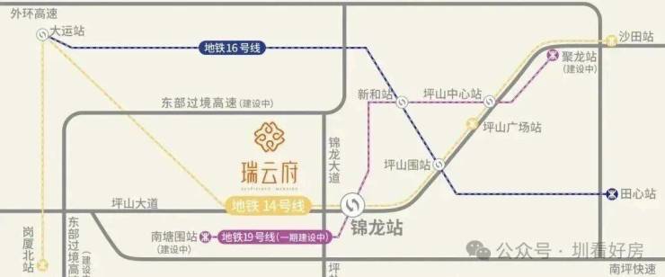 天健瑞云府,位于坪山区碧岭街道沙湖社区锦龙大道与新龙路交汇处西侧约400米,地处沙湖板块,坪山在近年来发展迅速,主要发展新能源与智能网联汽车产业、新一代信息技术及智能制造产业、生物医药产业等经济,在2023年重点企业产值高达3344亿元,同比增长59.2%。