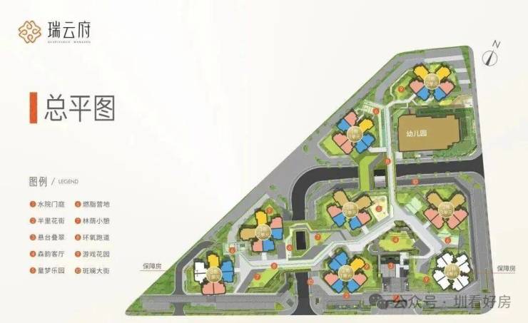 天健瑞云府,由天健集团+深福保+深高新集团3家国企联合打造,总占地面积约3.6万㎡,总建筑面积约22.49万㎡,计容建筑面积约16.46万㎡,容积率4.75,绿化率30%,共由8栋32-36层高住宅组成,分3个地块开发,不过花园都是共享连通在一起的,其中1栋1单元/2栋2单元/3栋1单元住宅33F,1栋2单元/2栋1单元/3栋2单元住宅32F,2栋3单元/2栋4单元住宅36层,4栋是1所9班制幼儿园。