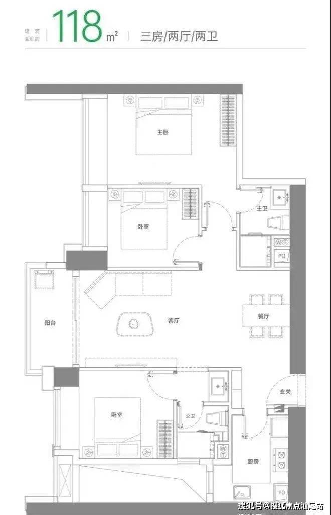 ③ 125㎡3房2卫:809套(A户型646套+B户型99套+C户型64套)