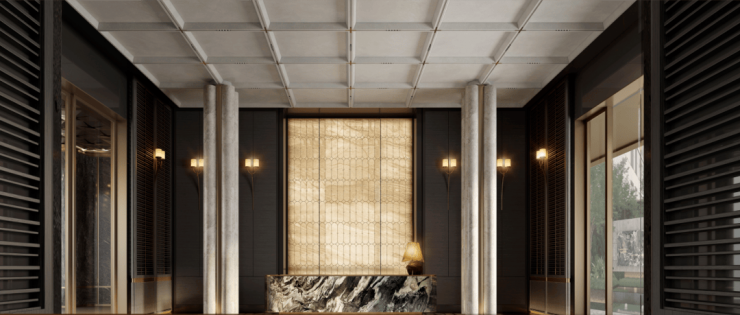 源赏艺术共鸣——归心礼序:打造酒店式归家秩序,在归家路上植入南洋特色元素,将仪式感与艺术性完美交融,身份气度不彰自显。