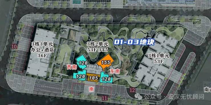 规划为3栋超高层塔楼,3栋一单元住宅174米53层,3栋二单元住宅178米53层,3栋三单元办公+酒店170米36层。规划1120套,其中回迁981套+可售139套,停车位1019个。