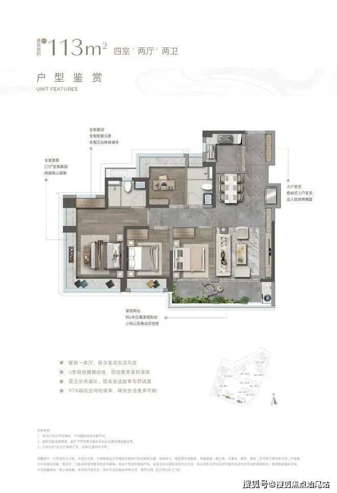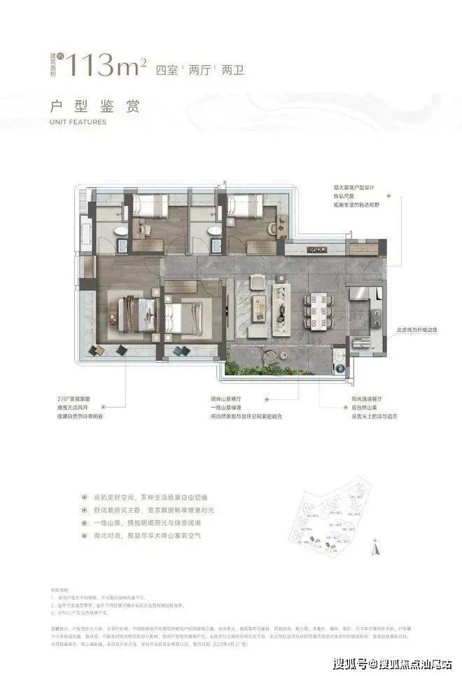 建面约113㎡的大四房有横厅和竖厅两种户型设计,