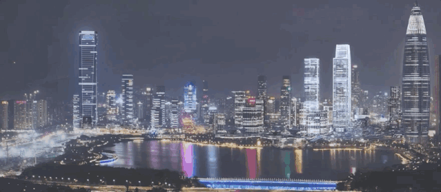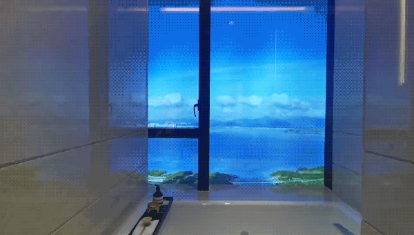 大面积的落地玻璃,天气好的时候,在家里就可以感受深圳湾的阳光,夜幕降临,画面切换到夜晚的灯火阑珊