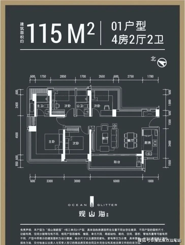 115㎡的4房2厅2卫,设计的是横厅南北通透格局,客餐厅6米开间,LDKB一体化,全屋飘窗,4个卧室分别做到了3.9米/3米/2.8米/2.6米的宽度,主卧加1个次卧270°全景飘窗,客厅出6米长的大阳台,L型厨房,得房率约95-97%(包含赠送),西南或东南朝向。