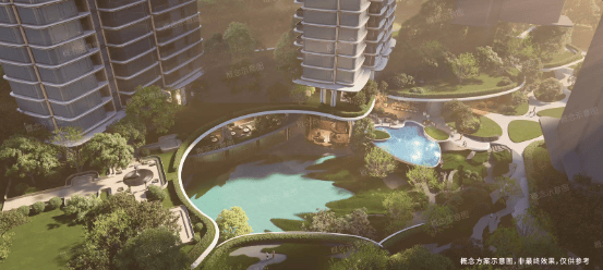 汲取海洋美学意涵,打造非凡创新的3层架空抬高、优越底盘的立体浮岛社区,将万象系商业街区/中央公园景观/社区配套叠加到住宅下方。户均约 40m2的服务配套,实现深圳鲜有的恢弘服务底盘。