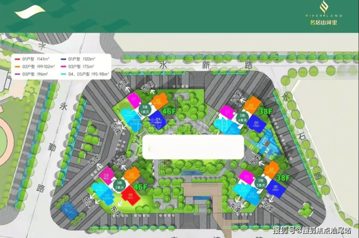 首推的01地块(一期):总占地面积约1.56万㎡,总建筑面积约11.7万㎡,计容建筑面积约9.05万㎡,容积率5.83,绿化率40%,共由4栋总高38-46F的住宅组成,其中3栋1/2单元住宅46F,3栋3/4单元住宅38F。