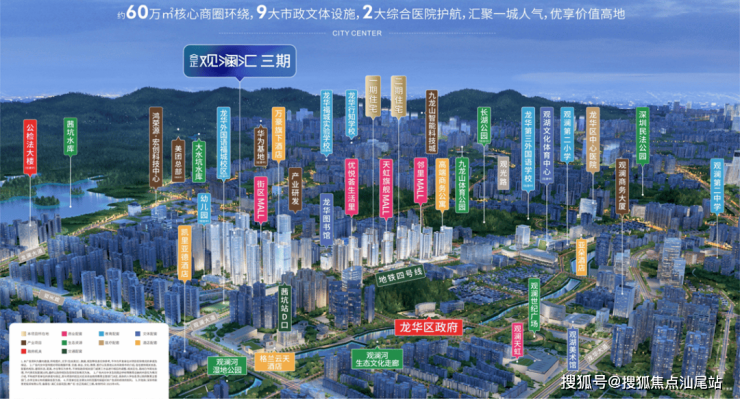 合正观澜汇坐落于龙华区观澜板块,这一区域近年来发展迅速,不仅紧邻华为总部基地,还紧挨着龙华区政府,地理位置得天独厚。作为深圳的科技重镇,华为总部基地的辐射效应显著,吸引了大量高科技人才和企业入驻,为周边房产市场注入了强劲动力。同时,地铁4号线西坑站的上盖物业身份,更是极大地提升了项目的交通便利性,无论是日常通勤还是周末出行,都能享受到地铁带来的便捷与高效。