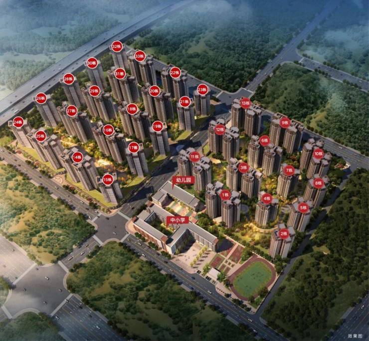 项目配套-全龄教育(实景图):家门口享18班幼儿园及九年一贯制公立中小学12中,一站式优质教育,成才无需远行,让孩子赢在起跑线。