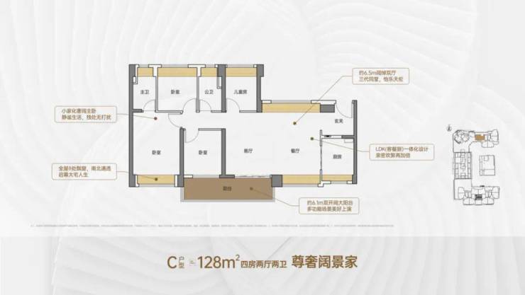 C户型-约128㎡4房2厅2卫:户型分布在5单元,横厅南北通透格局。