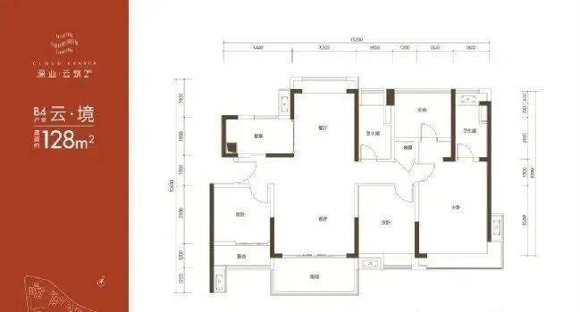 128㎡的4房2厅2卫,B4户型,仅4栋的06号房才有,设计的是竖厅南北通透格局,客厅4.2米开间,餐客厅一体化设计,4个卧室分别做到了3.6米/3米/3米/3米的宽度,U型厨房,卫生间干湿分离,得房率:80.14%(不含赠送),阳台主朝东南向。