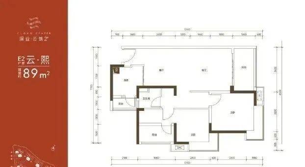 89㎡的3房2厅1卫,E2户型,设计的是竖厅格局,客厅3.6米开间,LDKB一体化设计,3个卧室分别做到了3.2米/3米/2.8米的宽度,L型厨房还带1个小生活阳台,卫生间三段式分离,得房率:79.89%(不含赠送),阳台有东南/西南或正南朝向。