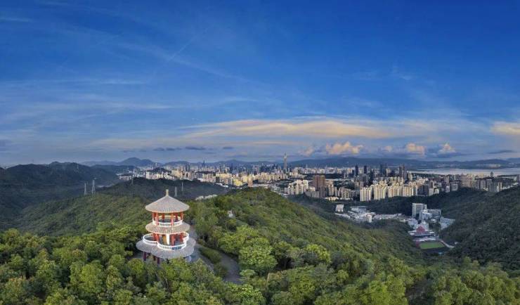 最低密的山海环城公园带:三山六公园环绕,背靠塘朗山、安托山、燕晗山,30KM山海环城公园带,近20余万平山体公园。