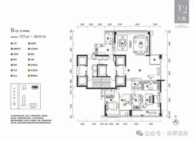 【T7-01户型鉴赏】约393㎡四房三厅六卫