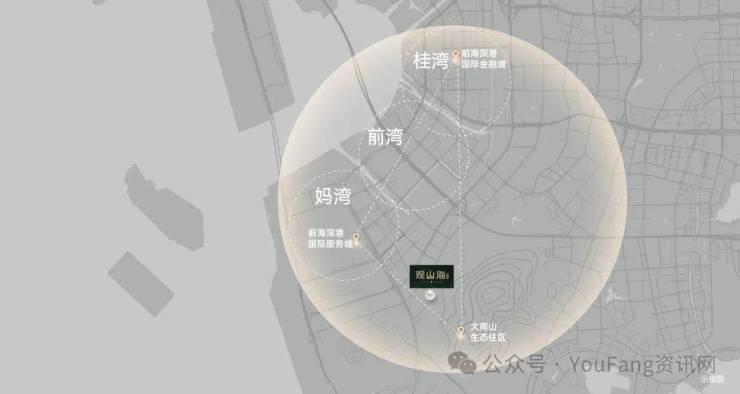 🔘大南山生态住区项目所在前海合作区大、小南山片区西组团规划定位重点安排教育、配套、体育等公共服务设施和生活服务设施(数据来源:《中国(广东)自由贸易试验区深圳前海蛇口片区及大小南山周边地区综合规划》与【桂湾】国际金融城和【妈湾】深港国际服务城两大前海核心区引擎形成前海黄金三角,工作、生意生活尽在掌握🏆山海通廊:约650米两个红绿灯,咫尺2.9k㎡妈湾理想城市约 53.8 公顷绿地公共空间,营造全域公园城市,宜业宜居的绿色人文之城(数据来源:百度房产深圳站)