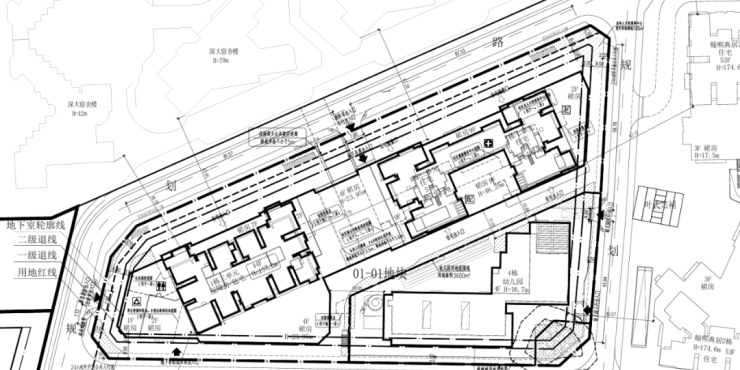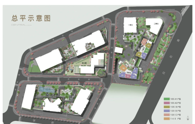 01地块:规划3栋44层、55层、55层超高层住宅(1栋一、二、三单元),以及1栋幼儿园(4栋)。