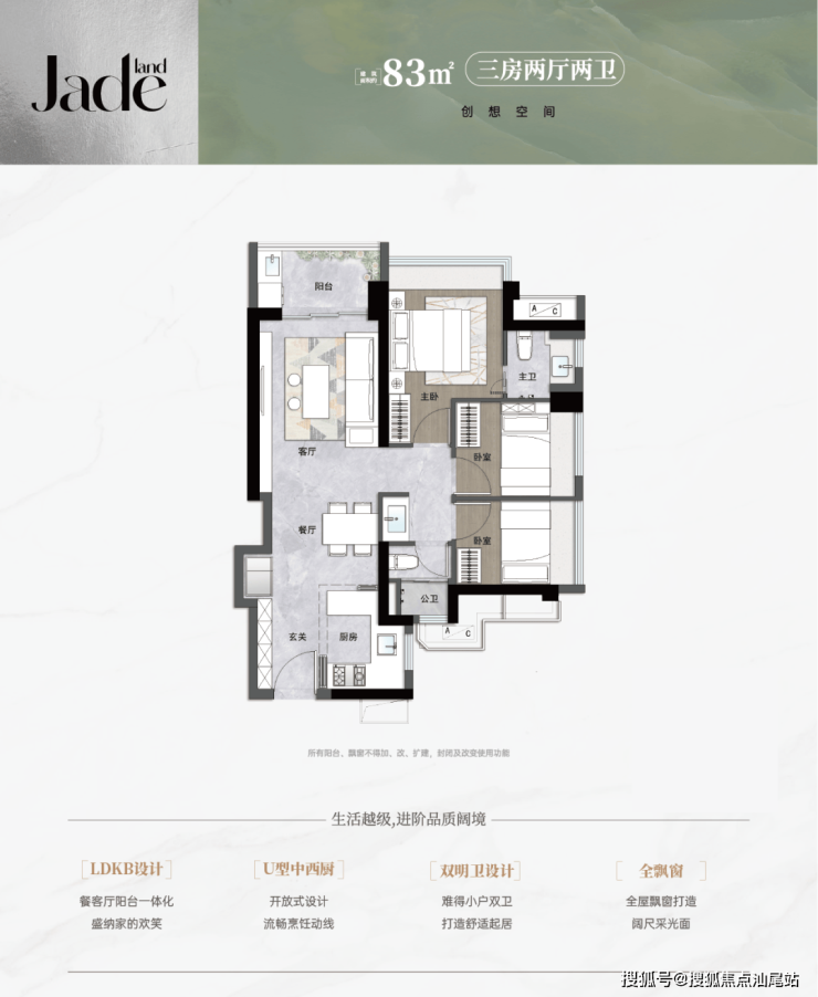 - 83㎡ 3房1.5卫:相比一期80㎡的3房1卫,面积增加3㎡,主卧增设无淋浴功能的“半个卫生间”,缓解多人口家庭如厕压力,得房率提升至77-78%,部分飘窗可改造以拓展空间。