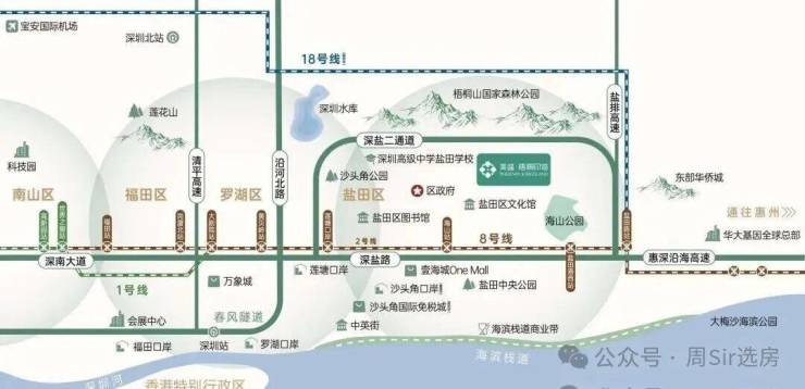 周边除了轨道交通,深盐路、惠深沿海高速、春风隧道等快速路网密集分布。同时,沙头角口岸、莲塘口岸也近在咫尺,便捷通关香港等多元需求。