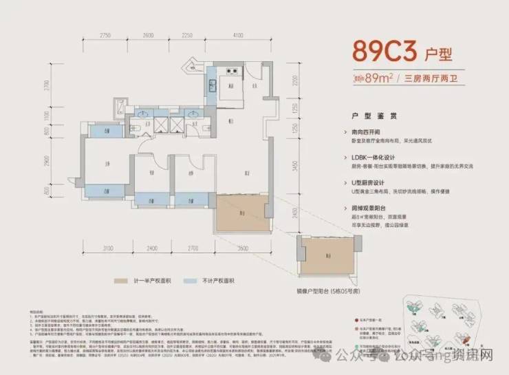竖厅设计动静分区,约3.5米开间主卧,带独立卫生间,书房L型飘窗,多面采光更通透,U型厨房布局,流线顺畅。
