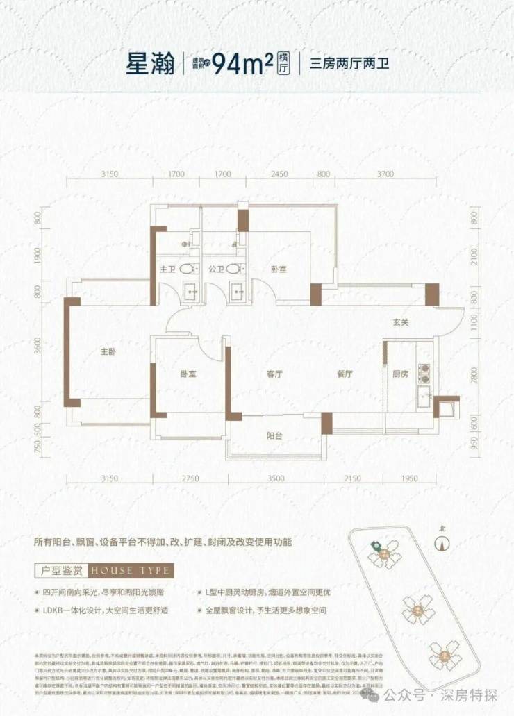龙华观澜,玖珑瑧境·新玥(备案名:福城境未来家园)计划将在2026年3月份取证入市,本次首推1栋1单元,共167套房源,面积有77㎡的3房1卫,87-94㎡的3房2卫,111㎡的4房2卫户型,全南朝向,也是观澜第二个新规建设的新盘,得房率高达98-105%。