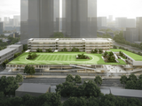 这几个地块在后期都会有风雨连廊连接在一起,直接接驳到地铁站,红色地块的是1所九年制公办学校,目前还是一片空地,没有公布出来具体学校。