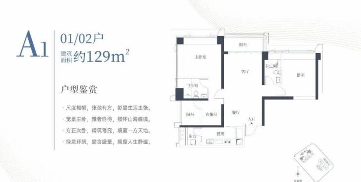 🔹1栋一单元A1、A2户型:面积约为129㎡