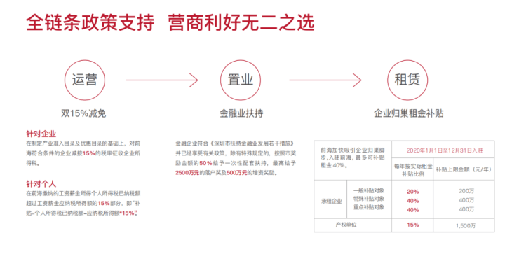前海壹号项目引入超10+家百强知名企业,涵盖互联网,银行,物流,通讯,文化等行业;与名企为邻,资产评估水平更高、资质更优,前海名企数量最多,最优租户组合。