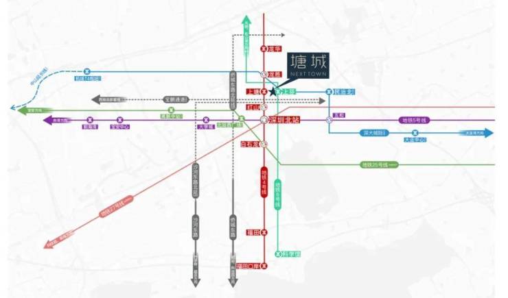 塘城壹号(推广名又叫塘城NEXT TOWN)位于深圳市龙华区民治街道上塘片区,是三轨交汇的项目,与6号线无缝衔接,4号线约450米左右,33号线在建中预计26年年底痛车,距离约300米左右