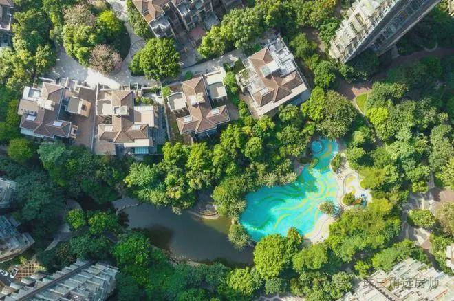 风水讲究以“藏风聚气,山环水抱为吉”,溪山君樾就是一个上乘的风水宝地。外由塘朗山和银湖山两座山峦左右立势,周边还有四大水库环绕聚集;内部布局更是巧妙绝伦,园林入口设置了风水圆环,有风生水起、吸财纳气之意。园林内有活水溪流,有入水为财,聚气八方的寓意;所以溪山君樾从整体来讲,是把外面龙脉的气场和能量借进来,同时通过内部的布局通过水把财气聚集起来。