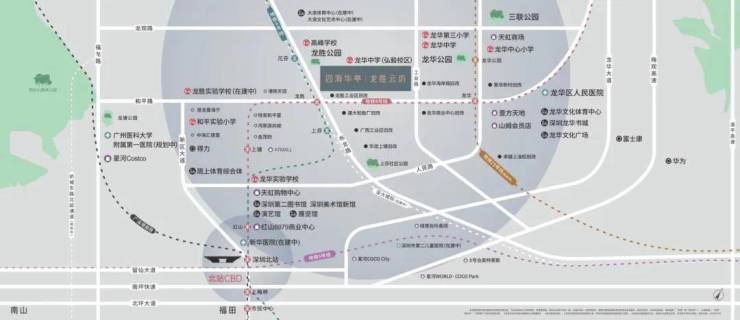 集萃深圳市新华医院(在建中,预计明年营业)、龙华人民医院、深圳市第二儿童医院(在建中,预计明年营业)、广州医科大附属医院(规划中)等市属公立三甲医院,高标准医疗服务体系,护航健康生活