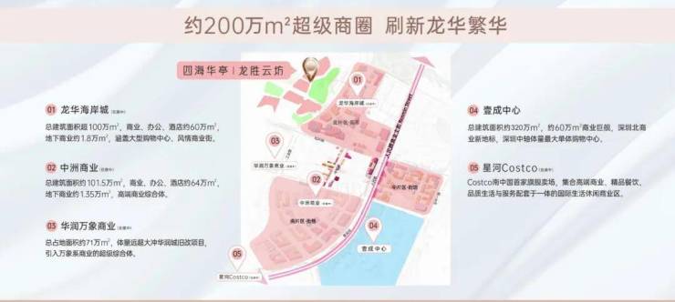 周边深圳最大型商业壹方天地、华南地区Costco(在建中)、红山6979、天虹商场等