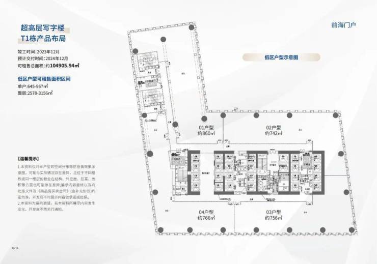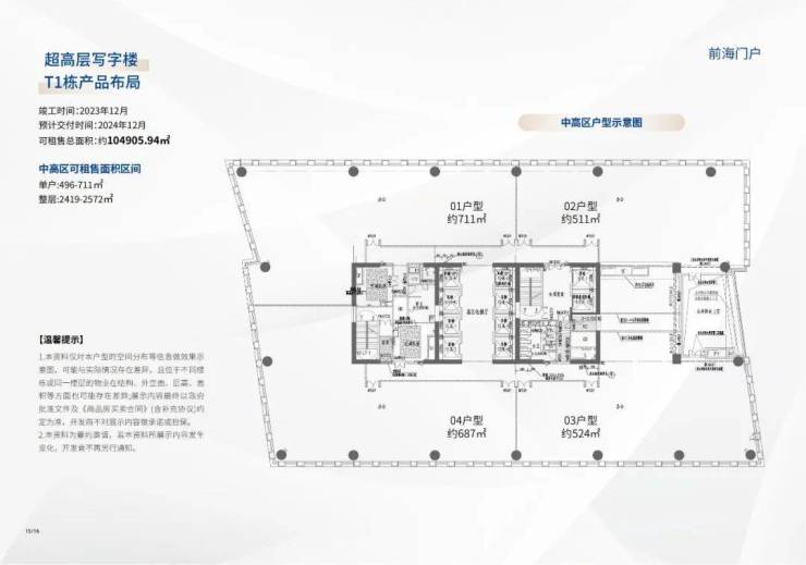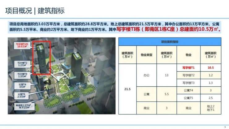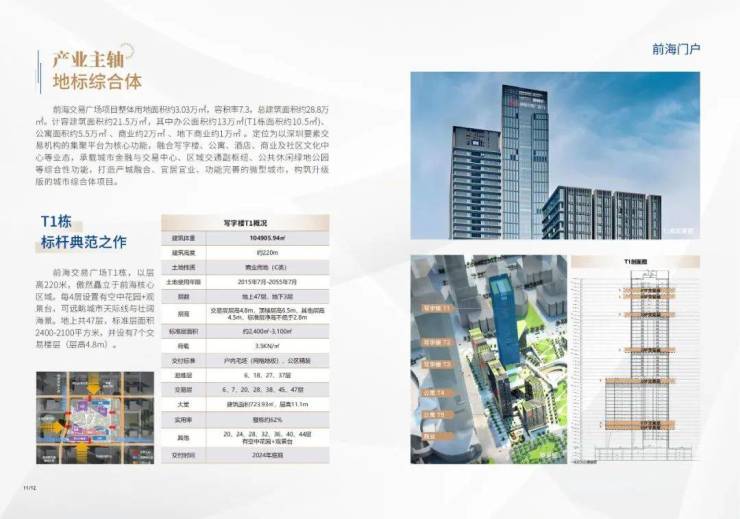 项目处于前海桂湾片区核心体块,总建筑面积19.50万平方米,地下建筑面积4.59万平方米,由T1、T2栋、T3栋及T1-T5业裙房共4栋单体组成。其中,T1栋建筑高度为220米。