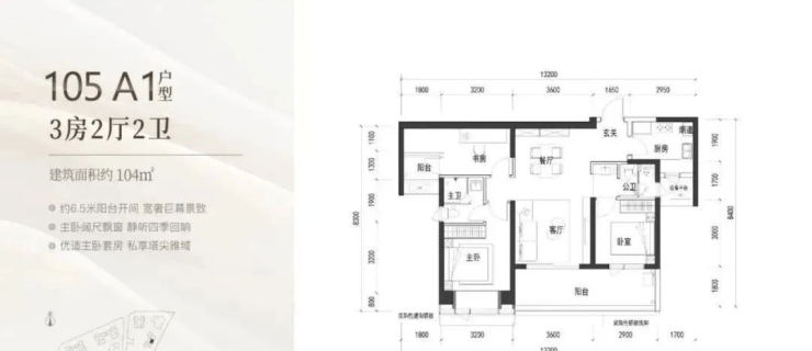 105㎡有两个户型,分别为A1双龙抱珠以及B户型传统竖厅