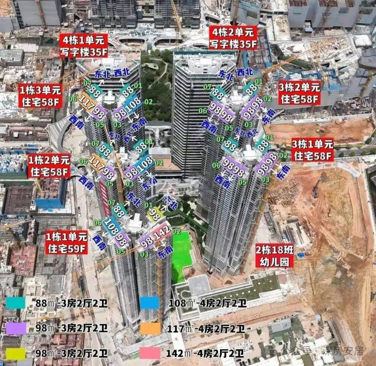 未来平方云山府,共分3期建设,总占地面积约2.73万㎡,总建筑面积约37.41万㎡,计容建筑面积约27.51万㎡,容积率9.23,绿化率32.01%,共由5栋58-59层高住宅组成,其中1栋1单元住宅59F,1栋2/3单元住宅58F,3栋1单元/2单元住宅58F,4栋1/2单元写字楼35F,2栋是1所18班幼儿园,配建有公交首末站。