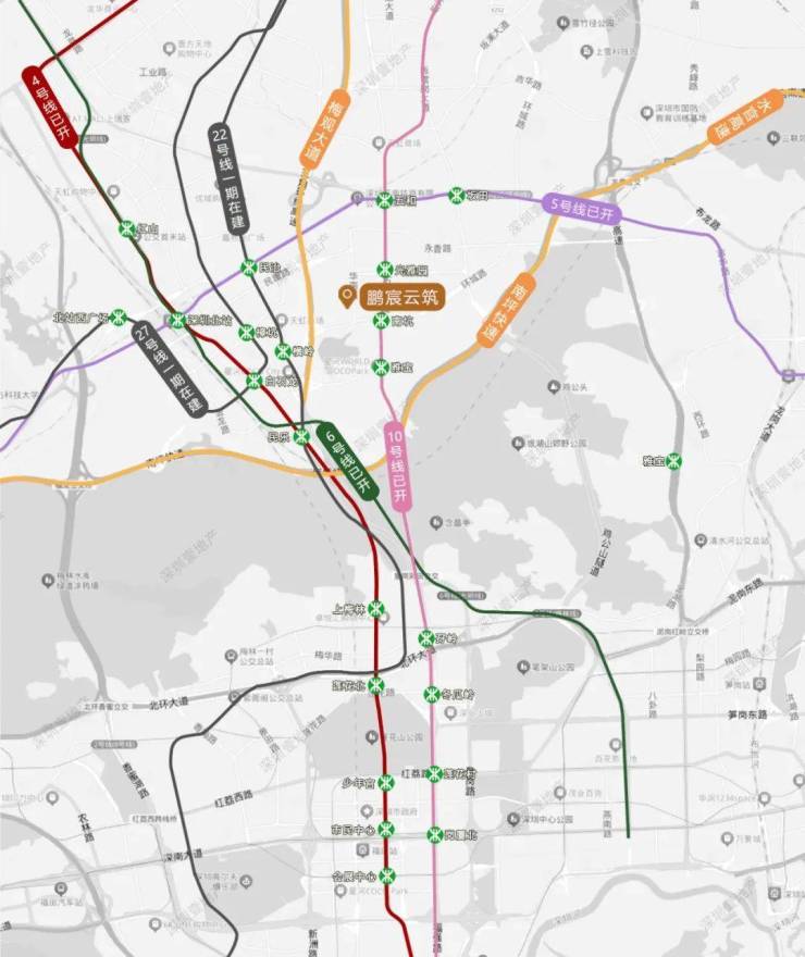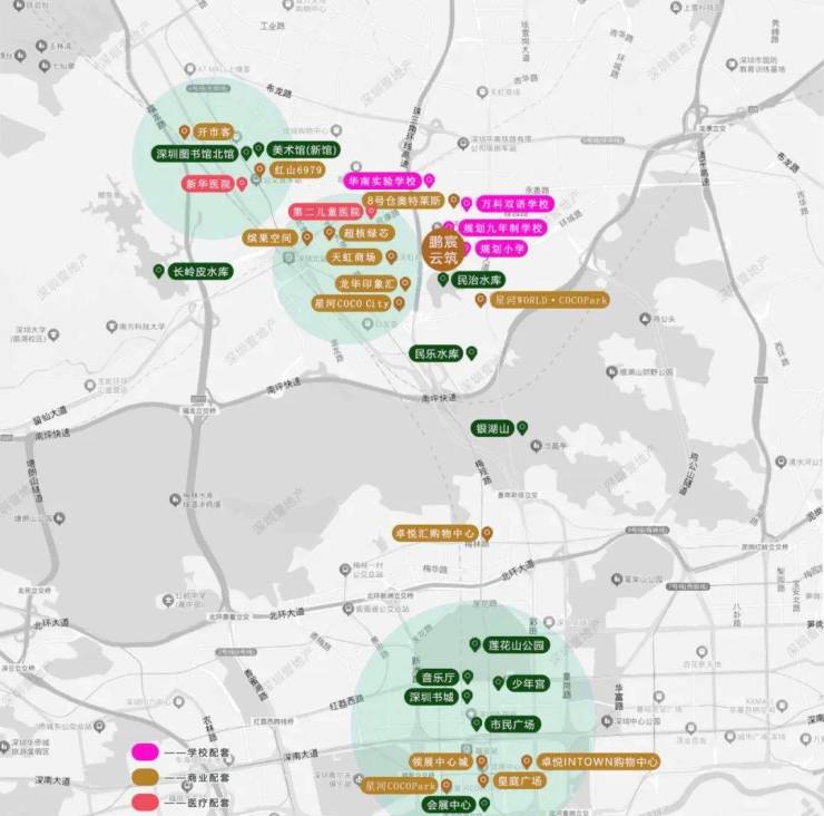 商业配套:中建鹏宸云筑500米范围内有8号仓奥特莱斯,在1.5公里范围内还有龙华印象汇、星河coco city、星河cocopark,天虹商场等商业综合体,举步即是繁华。