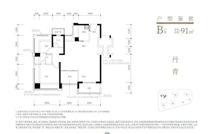 91㎡的4房2厅2卫,设计的是经典竖厅格局,进门入户玄关,客厅3.5米开间,动静分区,三开间朝南,4个卧室分别做到了主卧13.02㎡/次卧9.23㎡/次卧6.9㎡/次卧6.2㎡(实测面积,去掉墙体),主卧+1个次卧270°飘窗,U型厨房,卫生间三段式分离,得房率约101.3%(包含赠送),西南或东南朝向。