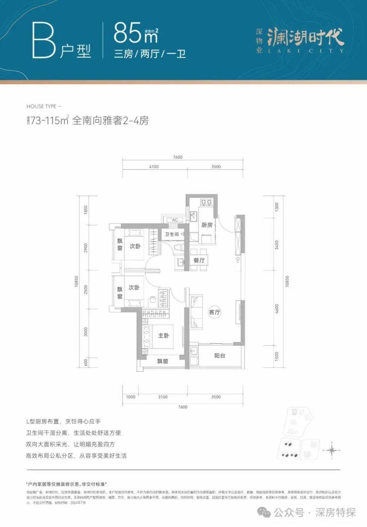 产品面积段:建面约73-115㎡全南宽奢2-4房
