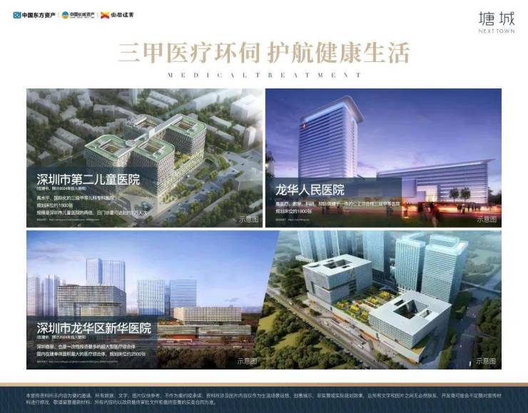 集萃深圳市新华医院(在建中)、龙华人民医院、深圳市第二儿童医院(在建中)、广州医科大附属医院(规划中)等市属公立三甲医院高标准医疗服务体系,护航健康生活。