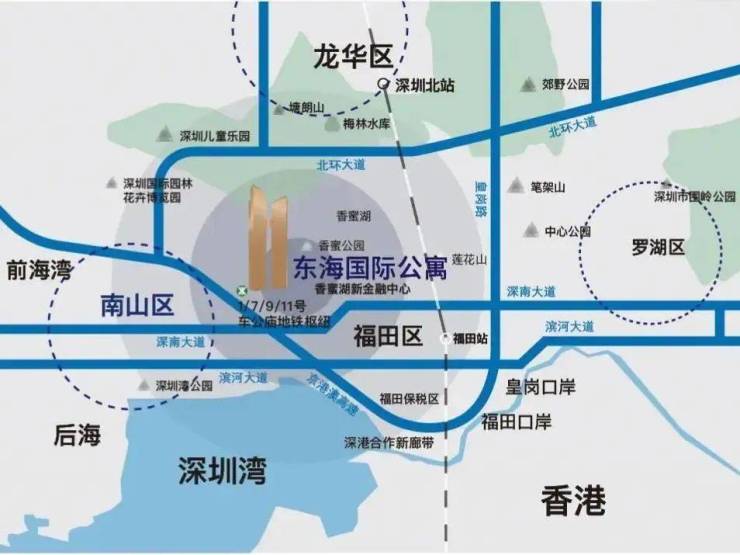 东海国际公寓位于深圳核心豪宅区——香蜜湖,据统计,香蜜湖片区内有,65座写字楼、18家高端酒店、646个餐厅、5家大型购物中心、218家教育机构、17个休闲娱乐场所;配套十分醇熟。