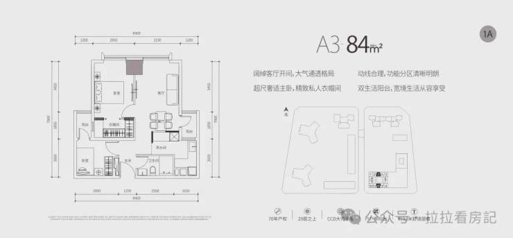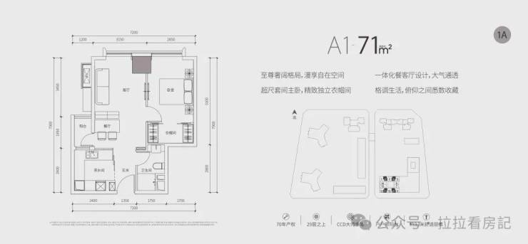 本期推售的约67-87㎡1-2房,均位于29层之上高区,享百米以上景观。70年产权,户户带阳台,拥有3.3m超舒适层高。室内公区、样板房均由CCD香港郑中设计事务所设计,将高级定制融入每一寸居住空间。
