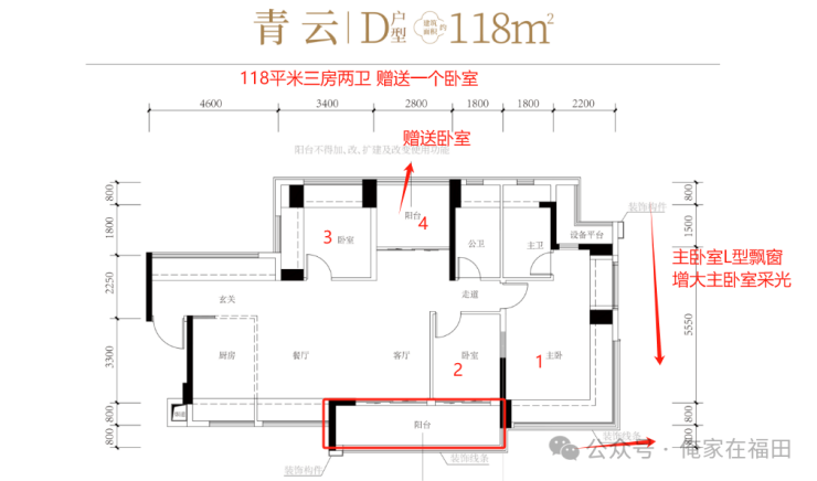 【118平米3房+1户型】118平米3房+1房 可以做4房2卫其中2房朝南,客厅带阳台,主卧室套间带L型飘窗,增大主卧室采光面积