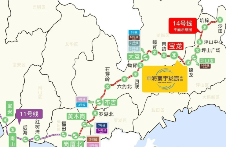 ▪ 地铁14号线宝龙站(已开通)步行可达,3站大运枢纽、10站福田中心,时速120km/h快线高效通勤;
