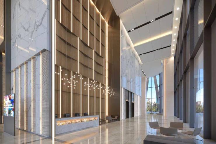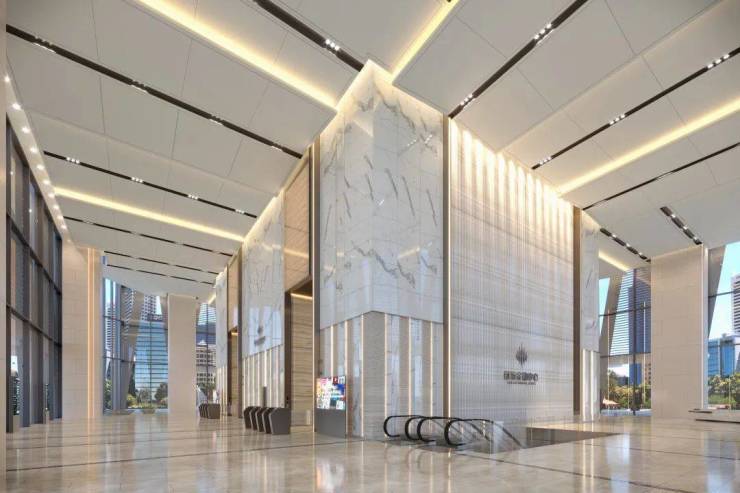 20米超高大堂,彰显企业气度;超2.6米的宽幅玻璃幕墙,双银超白LOW-E玻璃,恢弘景观体验;4.5米阔绰层高,无梁楼盖吊顶,巨柱结构设计,尊享高尺度空间;速度高达7m/s的奥的斯电梯,为每一位企业员工和来访客户带来高效商务体验;国际LEED金级认证及国标绿色三星认证,真正绿色商务地标。