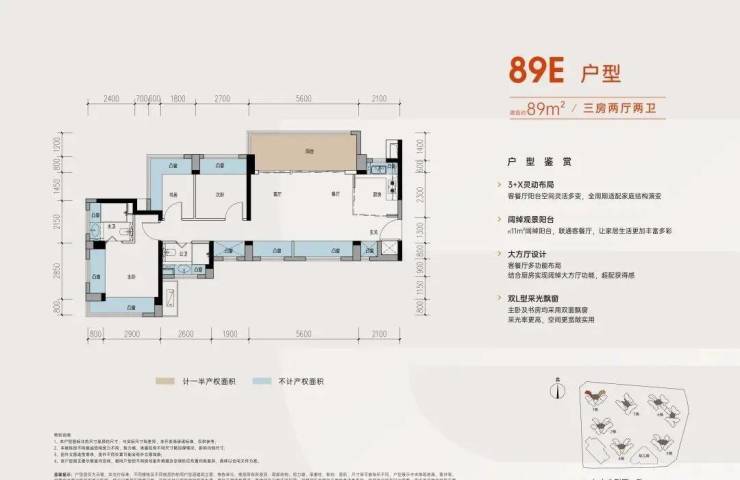 以89㎡户型来看,灵活可变的设计,轻松实现房间与客厅空间多变。